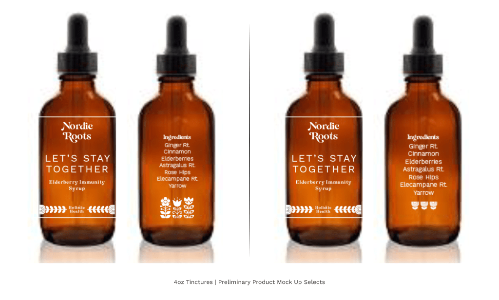 Tincture labels from an early iteration of the design process below.